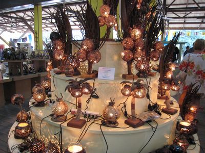 土産物店で売っていた椰子の実の殻をつかって作ってあるランプ。