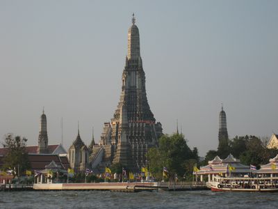 まずはチャオプラヤー川の対岸にある「ワット・アルン(暁の寺)」に行きました。
